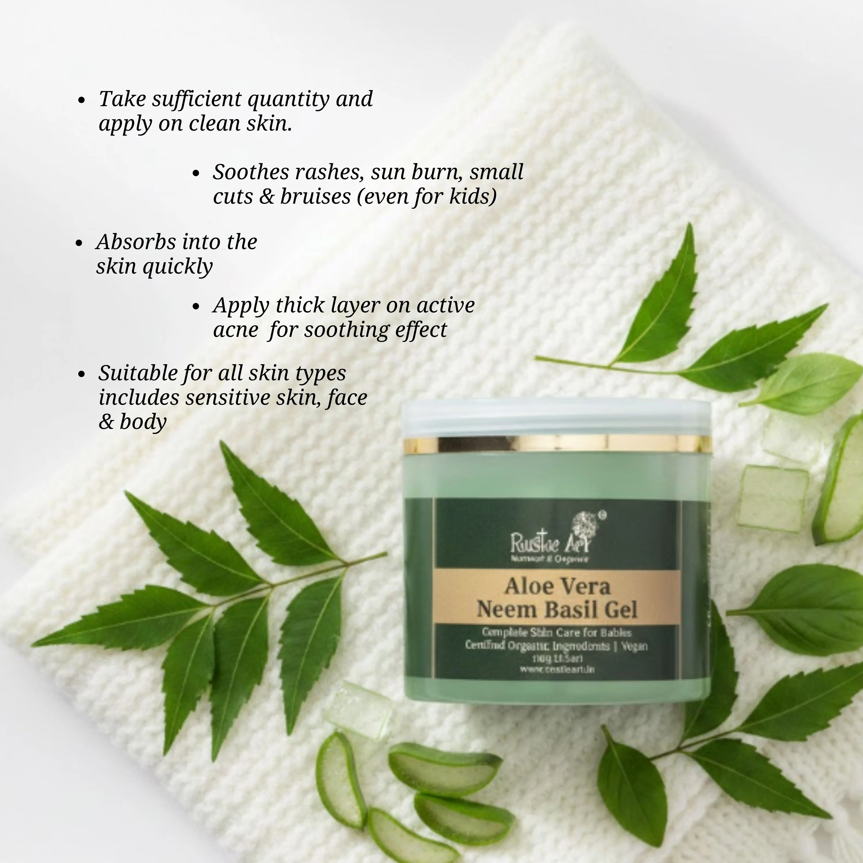 Neem Basil Aloe Vera Gel 100 gm| Soothes Acne, Rashes & Irritation