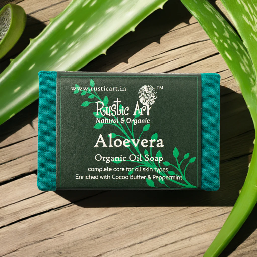 Are you emotional? Do you cry over your favorite songs? Now retain moisture in your skin with the Rustic Art Aloe Vera soap. Aloe Vera cools down the skin, soothes inflammation and is a natural protector against the Sun. Jojoba oil is rich in multivitamins which helps in repair and damage control. Palmrosa hydrates the skin keeping it soft and young. Palmrosa is also known to heal scars. Lavender oil regulates and uplifts the mood, calming the senses down post shower. Each cold processed soap is handmade using highest quality cold pressed certified organic oils, essential oils and herbs. It's a balanced combination of hard oils like coconut and vegetable butters, and soft oils like sunflower, rice bran, sesame, flax seed, castor and almond which create a soft lather and keep the skin moisturized. Each bar of soap is hand wrapped in cotton fabric. What can we say, it's a daily soap that'll never be boring!